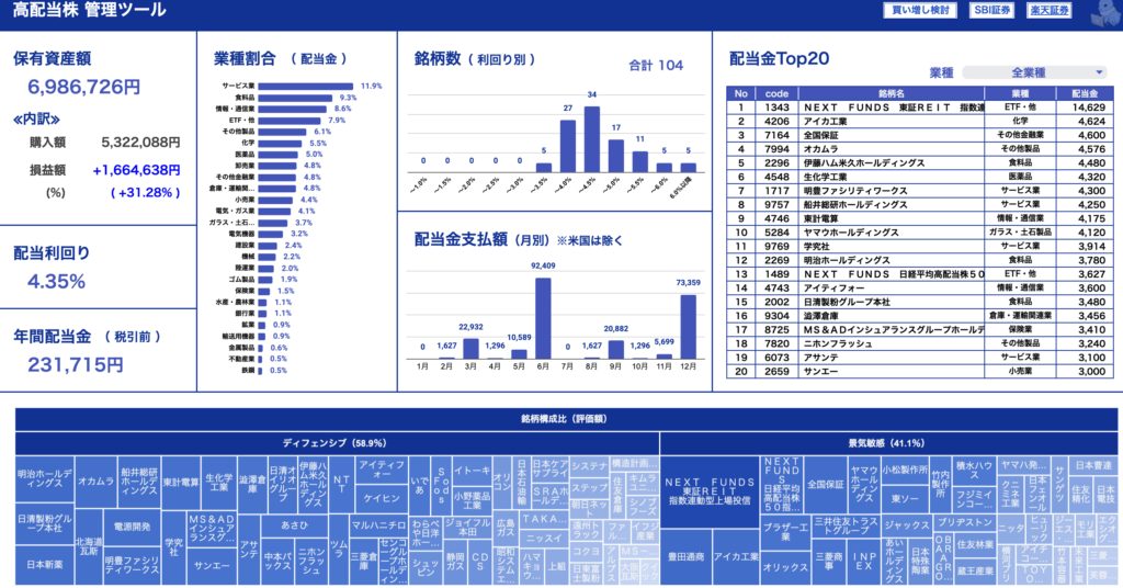 ある程度の利回りを確保しつつ最低限のセクター分散をおこなっていますが、
